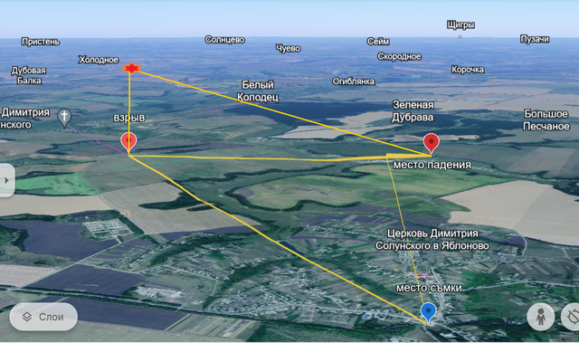 Пока собираю видео и фото. Локация оператора самого информативного видео уже установлено, Невзоров опубликовал , но по моими прикидкам не совсем точно указаны локации оператора, что искажает данные по направлениям на облачко в небе и место падения).
