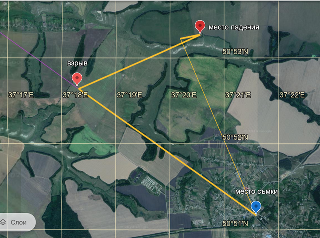 Но уже даже по этим неточным данным можно заключить, что падал самолёт в направлении Москвы, а не Белгорода, как вещают в РашТВ.